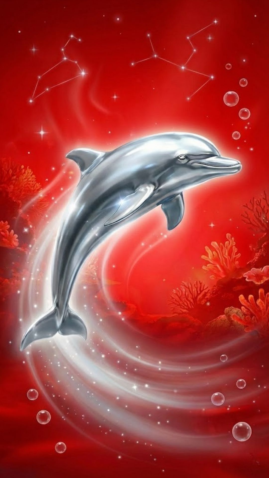 >>銀のイルカ座ラッキーカラー(明るいレッド)の待ち受け壁紙無料ダウンロード