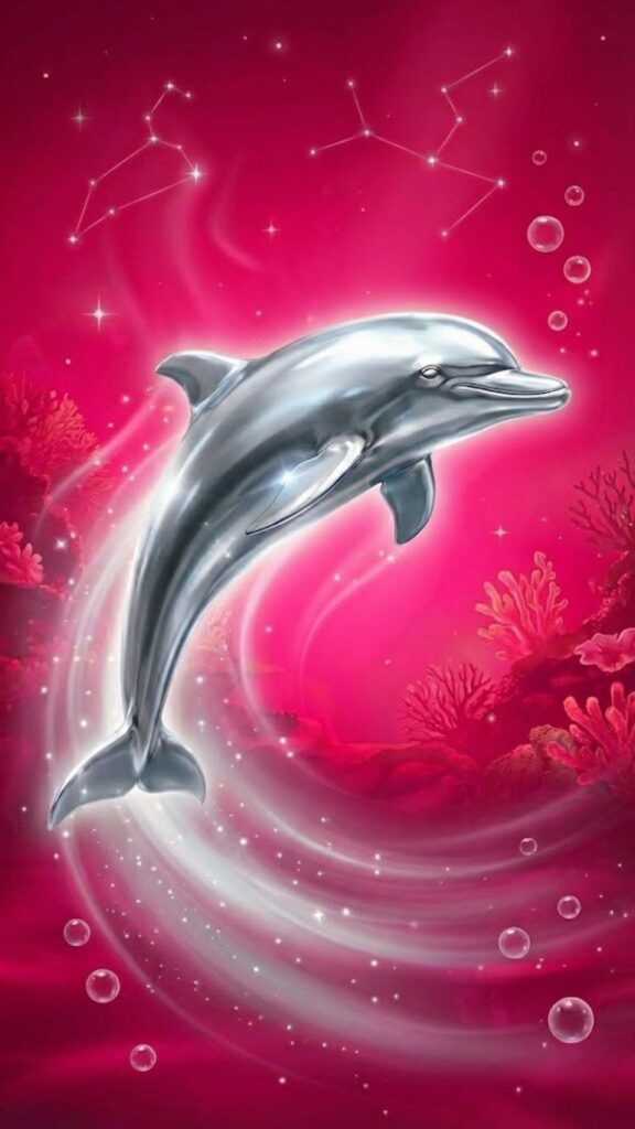 >>銀のイルカ座ラッキーカラー(ピンク)の待ち受け壁紙無料ダウンロード