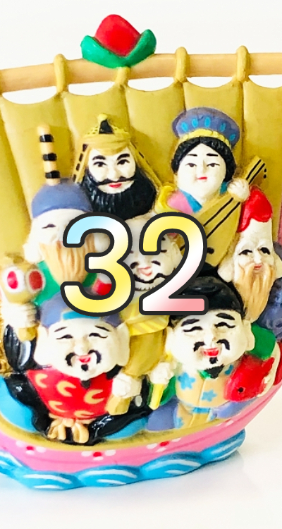 数字の「32」は数字「17」「20」「31」の開運サポートナンバーであり、「七福神」との組み合わせは相性抜群☆